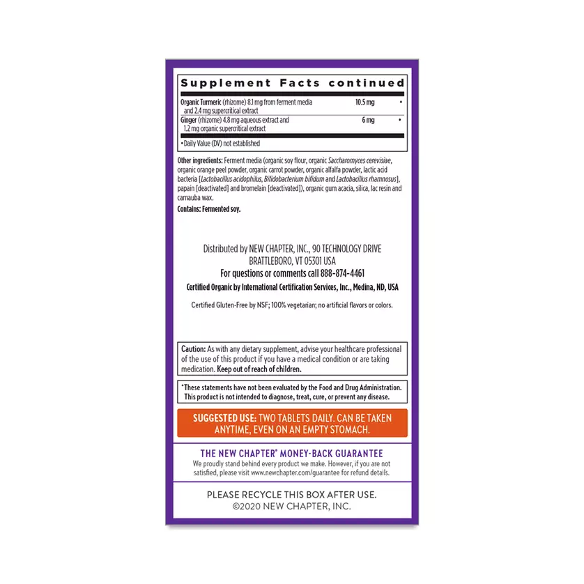 Organic Turmeric (rhizome) 8.1mg from ferment media and 2.4mg supercritical extract10.5mg