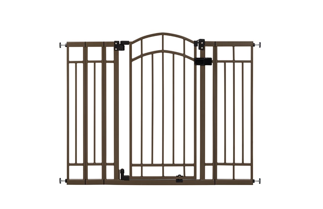 With its stylish arch, the Multi-Use Decorative Extra Tall Walk-Thru Baby Gate is secure, convenient, and compliments your home’s look. This 36” tall baby and dog gate fits openings 28.5” to 48” wide and can be installed in doorways or hallways using the no-drill pressure mount system with adhesive wall cups. Hardware is included for a secure installation at the top or bottom of stairs. It’s easy to operate this gate when your hands are full. The convenient auto-close feature will shut and latch the door behind you. Or engage the hold-open feature by opening the door more than 90 degrees. If installed between rooms, the gate door opens in either direction. Over stairs, add the included door stopper to help prevent the door from swinging outward. Package includes hardware installation kit. Recommended tools for hardware installation: drill, Phillips-head screwdriver, pencil, measuring tape.