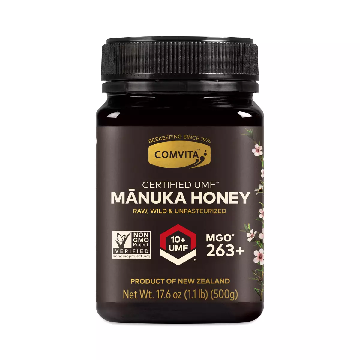 Comvita Certified UMF™ 10+ (MGO 263+) Premium Grade Manuka Honey is Raw, Wild, and Unpasteurized. It’s harvested from the nectar of the Manuka flower in the pristine forests of New Zealand. Known to support digestive and immune health with its naturally occurring live enzymes, it has been shown to have antibacterial properties. Every batch is independently tested and certified by the UMF Honey Association. Only UMF measures the three signature compounds ((Leptosperin, DHA, and MGO – the key antibacterial marker) found in genuine, monofloral Manuka Honey.UMF 10+ (MGO 263+), is a premium grade superfood for daily wellness. Enjoy daily in the morning or before a workout as a natural energy source. Add to your tea, oatmeal, yogurt, or smoothie as a delicious sweetener, or simply enjoy by the spoon! Also, try as a DIY cleansing facemask for a renewed glow!