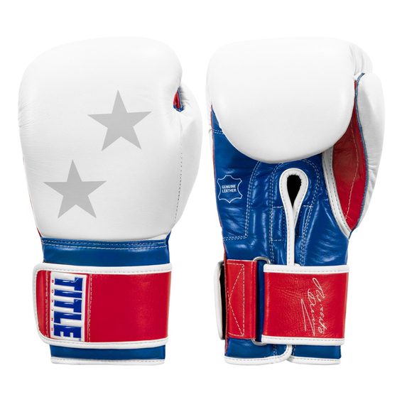 With the TITLE Roberto Duran Limited Leather Bag Gloves, you can harness the tough punching power of one of the most exciting and ferocious fighters of all time: the Manos de Piedra – the Hands of Stone. These gloves were designed with the Pride of Panama in mind and feature the country’s symbolic red, white and blue coloring to represent Duran’s love for his country. In classic TITLE style, we used a a D-ring with full wrap-around closure for a perfect fit for every time. They are an all-leather glove for extreme durability. Each glove has Duran’s distinctive embroidered signature on the cuff and a matching embossed TITLE label. These gloves are officially licensed and approved by the “Hands of Stone.”